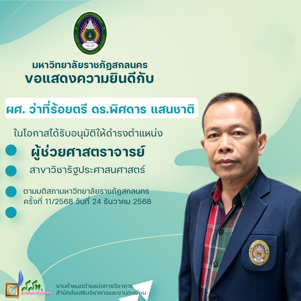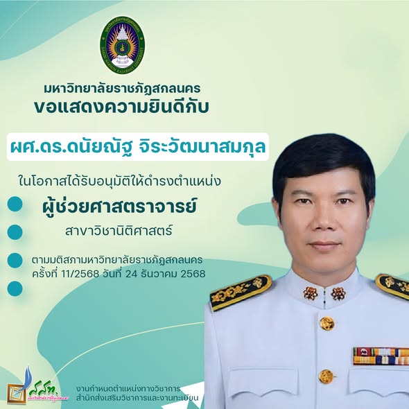 ขอแสดงความยินดีกับบุคลากรสายวิชาการ เนื่องในโอกาสได้รับอนุมัติแต่งตั้งให้ดำรงตำแหน่งทางวิชาการ จำนวน 3 ราย เผยเเพร่เมื่อ 7 มกราคม 25697 มกราคม 2026 โดย สภามหาวิทยาลัย 21 เข้าชม FacebookFacebookXXLINELine