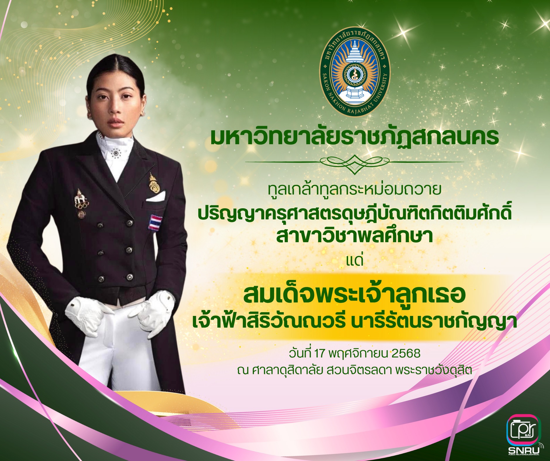 มหาวิทยาลัยราชภัฏสกลนคร ทูลเกล้าทูลกระหม่อมถวาย ปริญญาครุศาสตรดุษฎีบัณฑิตกิตติมศักดิ์ สาขาวิชาพลศึกษา แด่ สมเด็จพระเจ้าลูกเธอ เจ้าฟ้าสิริวัณณวรี นารีรัตนราชกัญญา